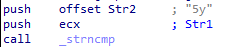 그 다음엔, 5y와 "?a"다음 2글자를 _strncmp 함수로 비교한다. "?a5y" 넣으니깐 다음으로 넘어갔다.