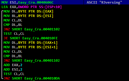 반복문을 돌며 "?a5y" 다음 글자들과 "R3versing"을 비교한다.