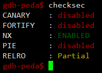 64bit 바이너리에 NX bit가 설정되어 있고, 그 외의 보안 기법은 설정되어 있지 않다.