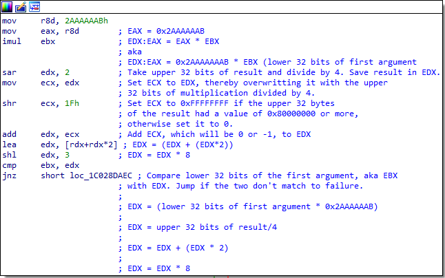 EDX = [공격자가 넘긴 인자의 하위 32비트] * 0x2AAAAAAB