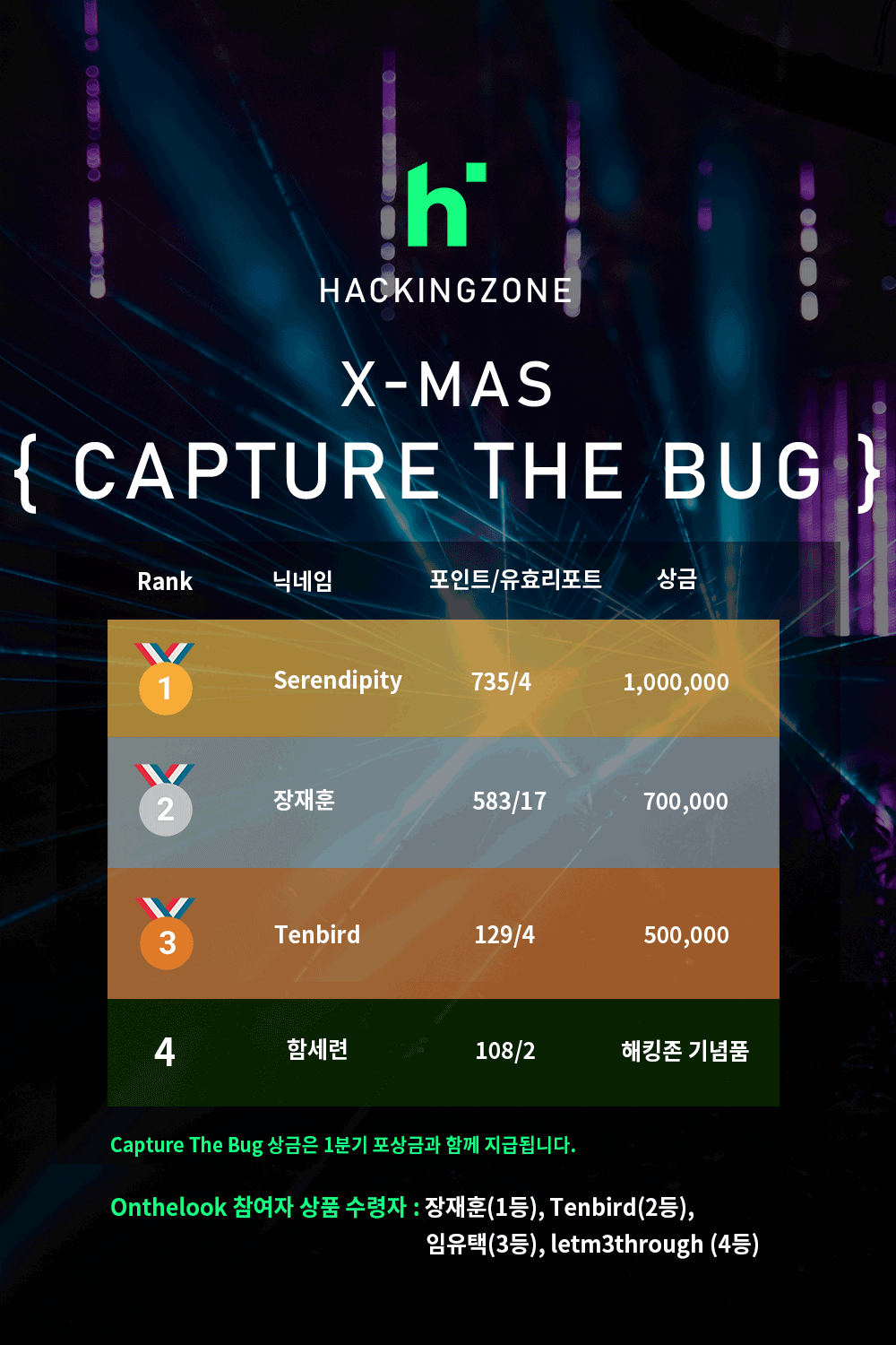 평소에 블로그는 개인 공부 정리하는 용도로만 사용했는데 최근에 해킹존에서 진행한 CTB 이벤트에서 좋은 성적을 거둬서 후기를 적어보려고 합니다 :) 군대 전역하고 다시 보안 공부하면서 해킹존이라는 버그바운티 플랫폼을 알게 돼서 몇 가지 취약점도 제보하고 서비스 관련 인터뷰도 진행했었습니다. 그리고 학교 수업과 SSL 프로젝트를 병행하며 정신없이 지내다가 프로젝트도 마무리하고 방학도 할 때, 해킹존에서 크리스마스 기념으로 Capture The Bug를 진행한다는 메일을 받았습니다.
