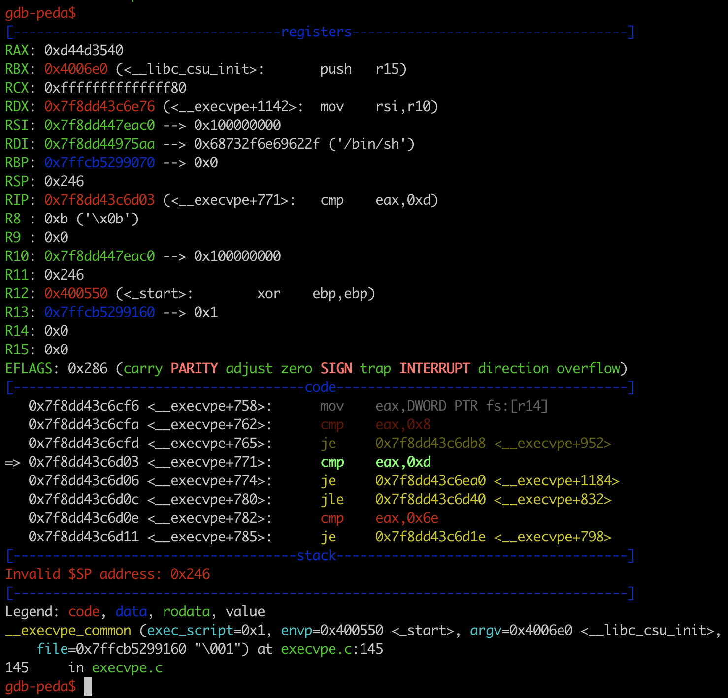 0x7ff54b824e89 <__execvpe+1161>: mov r11,QWORD PTR [rbp-0x78]