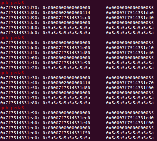 - alloc_buf를 통해 'Z'*0x20을 할당하여 아래와 같이 힙이 할당된 것을 확인할 수 있다.