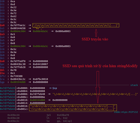 우리는 이 취약점을 ssid 파라미터를 조종하여 트리거할 것이다.